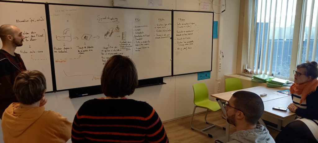 Dans le cadre de notre formation sur la pédagogie différenciée, nous proposons aux enseignant·e·s d’appliquer directement ce qu’ils et elles ont découvert durant la formation. Ainsi, les enseignant·e·s sont amené·e·s à imaginer un dispositif en groupe qui vise à intégrer la pédagogie différenciée dans leurs pratiques d’enseignement. Le travail en groupes de projet est en effet une méthode souvent déployée en pédagogie différenciée avec beaucoup d’effets sur les apprentissages des élèves.